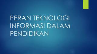 - PERAN TEKNOLOGI INFORMASI DALAM PENDIDIKAN